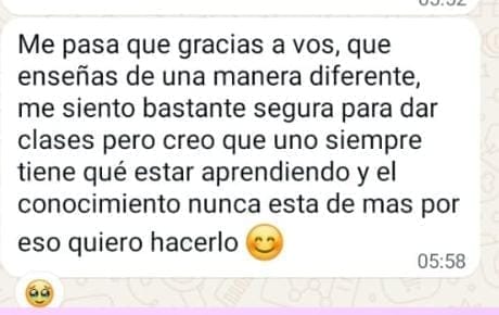 Dicho esto, se que cada realidad es distinta, y mi compromiso es acompañarte en tu proceso. Siempre vamos a buscar la forma de que puedas transitar la formación y aprobarla, adaptando recursos si lo necesitás.